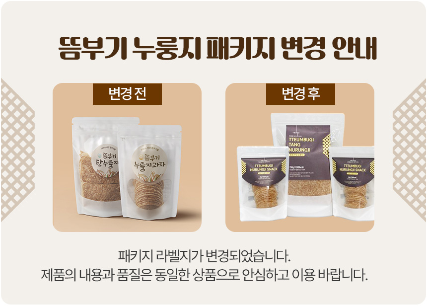 | 포장단위별 내용물의 용량(중량), 수량 | 뜸부기누룽지과자45g, 뜸부기탕누룽지250g |